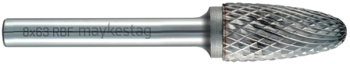 HM-Frässtift RBF, Ø 8x63 Zahnung 2, Stahl hochfest (P) Inox (M) Guß (K) Messing (N) Schweißnähte Schaft Ø 6mm