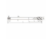 Gewindebohrer DIN376 Metrisch M20 HSSE Ni Typ R45W Anschnitt Form C Rechtsspirale 45° Z=4 Grundloch bis 3xD Toleranz ISO 2 (6H) Steigung 2,50 mm l1=140 mm l2=25 mm d2=16,0 mm Vkt 12,0 mm Bohrloch Ø 17,5 mm für Materialien P bis ca. 700 N/mm² und Alu/Bronze