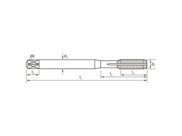 Gewindeformer DIN2174 Metrisch M6 HSSE TiCN Typ RLC N mit Schmiernuten Anschnitt Form D Grundloch-/Durchgangsloch bis 3xD Toleranz 6HX Steigung 1,0 mm l1=80 mm l2=19 mm l3=30 mm d2=6,0 mm Vkt 4,9 Bohrloch 5,5 mm für Materialien P/M/N mit einer Materialdehnung über 10%