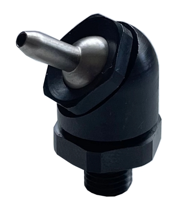 Stream KD mit G1/8" BSP Gewinde Düsendurchlass 2 mm, Grundkörper aus brüniertem Stahl, 45° Anstellwinkel, Kugeldüse aus Edelstahl, genauer, starker Kühlmittelstrahl, Hochdruckfähig bis 100 Bar, optionale Verlängerung 09181 erhältlich