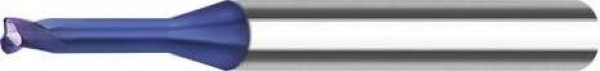 VHM Minikopierfräser Flachstirn 30° Spirale Z=2 D(0/-0,010)=0,6 mm ER(+/-0,005)=0,10 mm l1=0,6 mm d3=0,58 mm l2=6,0 mm L=45 mm d(h6)=4 mm AlTiSiN blue beschichtet Schaft DIN 6535HA freigeschliffen Stahl-/Hartbearbeitung über 52 HRC (P/H)
