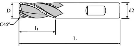 VHM Ø 12,0 mm Z=4 45° Flachstirn kurz EF=0,20 mm HR Schruppprofil Uni P/M/K