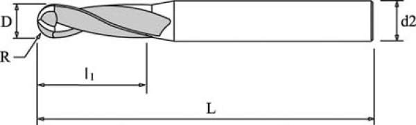 VHM Ø 16,0 mm Z=4 30° Kugelstirn kurz Uni P/M/K/N