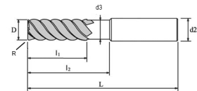 VHM Ø 16,0 mm Z=7 ER 2,0 uSp. Flachstirn abg. Stahl (P) über 52 HRC (H)