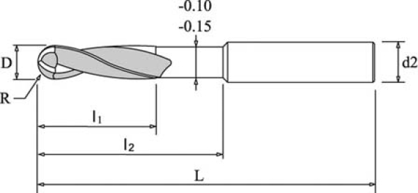 VHM Ø 5,0 mm Z=2 30° Kugelstirn abg. Uni P/M/K/H bis 52 HRC